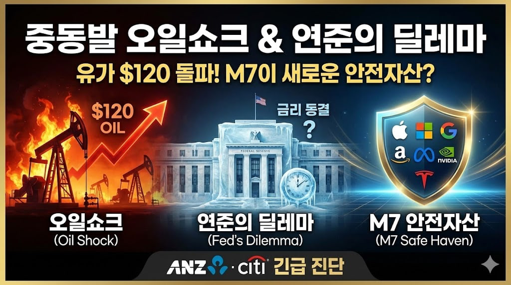 지정학적 공포가 지배하는 시장에서 JPM은 매우 냉철한 트레이딩 가이드를 제공합니다. 대중의 매도세(패닉 셀링)가 아직 본격적으로 시작되지 않았다는 분석은 섣부른 '저가 매수(Water-fishing)'를 경계하게 만듭니다. 가장 눈에 띄는 통찰은 '반도체 숏 / 소프트웨어 롱' 페어 트레이딩과 M7 매수 전략입니다. 거시 경제가 흔들리고 고유가가 경제 성장률을 갉아먹을 때, 역설적으로 자체적인 현금 창출력을 지닌 미국 대형 소프트웨어 기업들의 방어력이 돋보일 수밖에 없습니다. 에너지 수입 의존도가 높아 외국인 이탈 직격탄을 맞고 있는 한국 증시 투자자라면, 포트폴리오 내 에너지/방산 헷지(Hedge)와 함께 달러 자산 비중 확대를 심각하게 고려해야 할 전술적 위기 구간입니다.